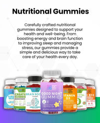 In this collection, you’ll find a variety of our carefully crafted nutritional gummies designed to support your health and well-being. From boosting energy and brain function to improving sleep and managing stress, our gummies provide a simple and delicious way to take care of your health every day.